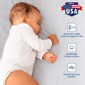- Breathable Cotton Cover: Offers a comfortable, breathable sleep surface for baby while on of the best breathable crib mattress.